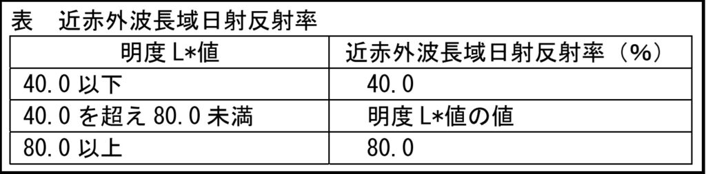 となっており、この規格の特徴は、やはり日射反射率でしょう。